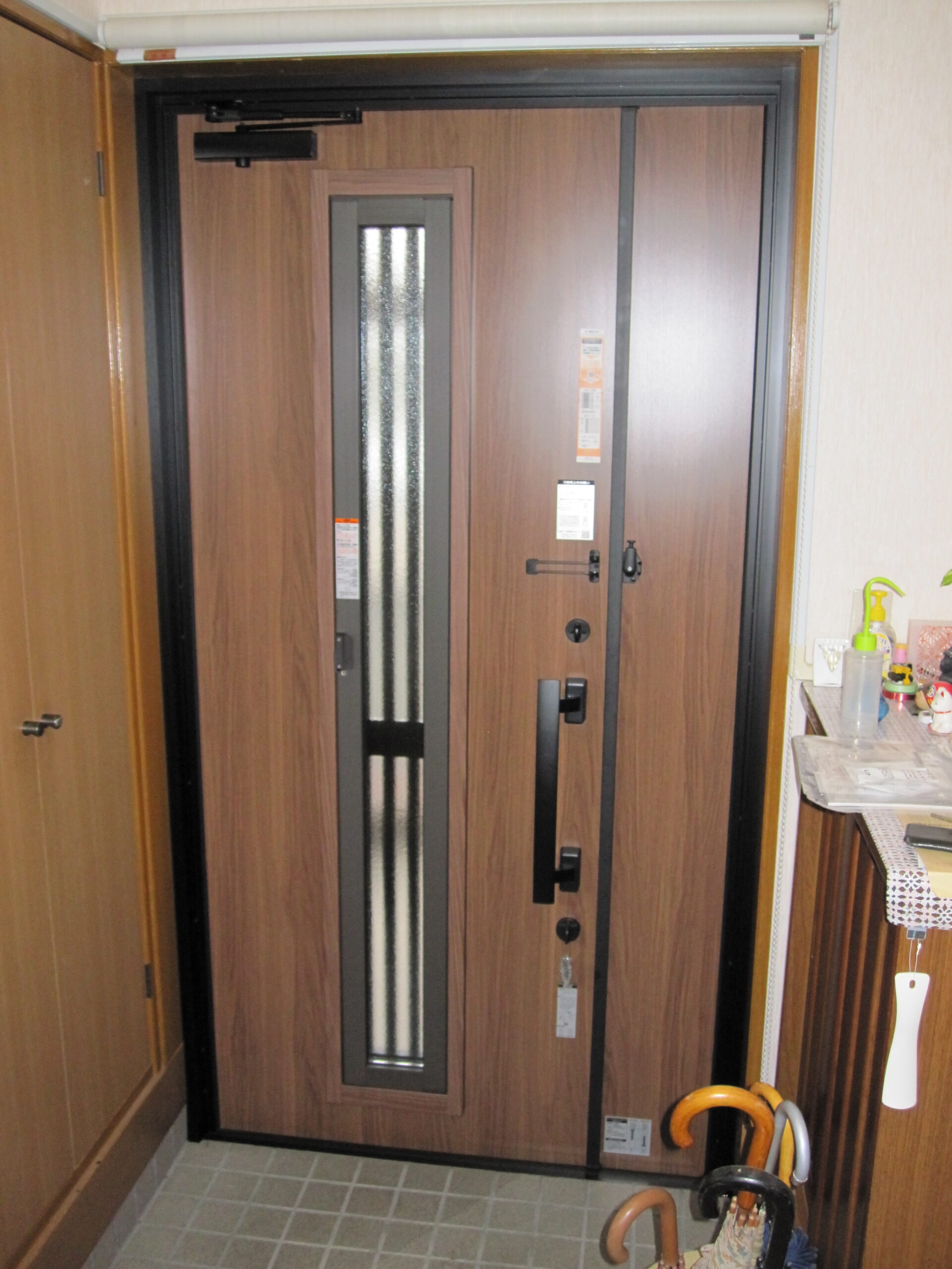既設玄関ドアを断熱性もあり風を通せるよう採風のあるドアへリフォームしたいとのご依頼でした
